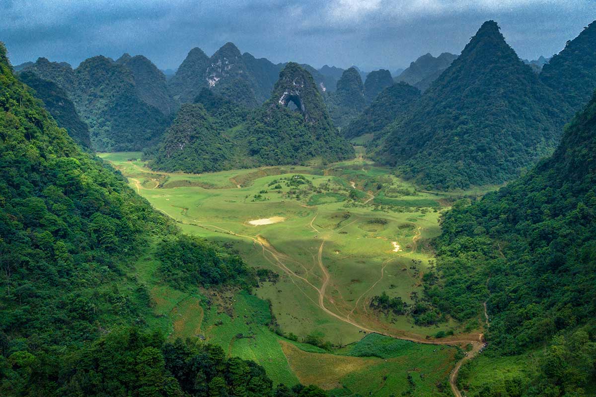 Niet ver van Ban Gioc ligt de Phong Nam Valley. Deze vallei is minder bekend, maar landschappelijk sterk: rijstvelden, dorpen en kalkstenen bergen liggen hier dicht bij elkaar. Er is een uitzichtpunt met breed zicht over de vallei, maar verder draait het ook hier vooral om het rijden en het landschap onderweg, niet om losse attracties.