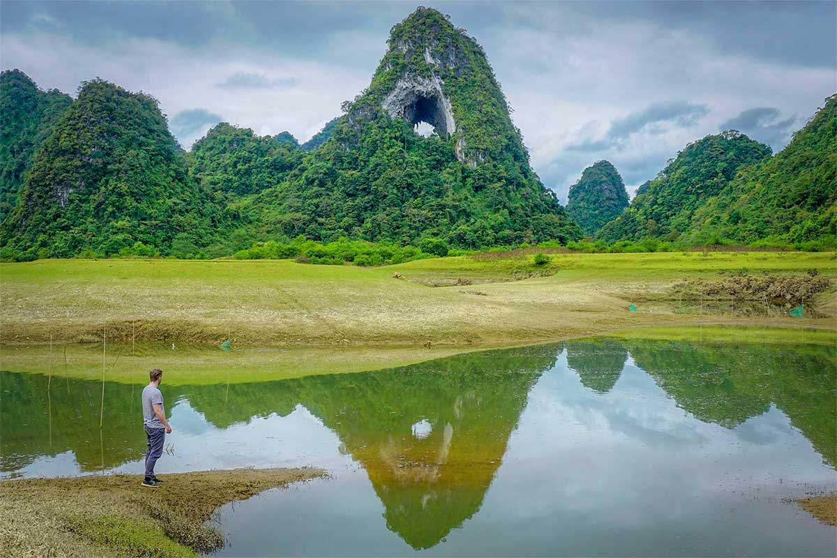 Op ongeveer tien minuten rijden van Nui Thung Mountain ligt Thang Hen Lake, omringd door jungle en steile kalkstenen bergen. Het meer maakt deel uit van een systeem van 36 meren die allemaal in dezelfde vallei liggen en slechts enkele honderden meters van elkaar verwijderd zijn. Met een lengte van zo’n 2 kilometer en een breedte van ongeveer 500 meter is Thang Hen het grootste meer van het gebied. De combinatie van water, bos en bergen zorgt voor een rustig en open landschap dat duidelijk anders aanvoelt dan de bekendere meren in Vietnam.