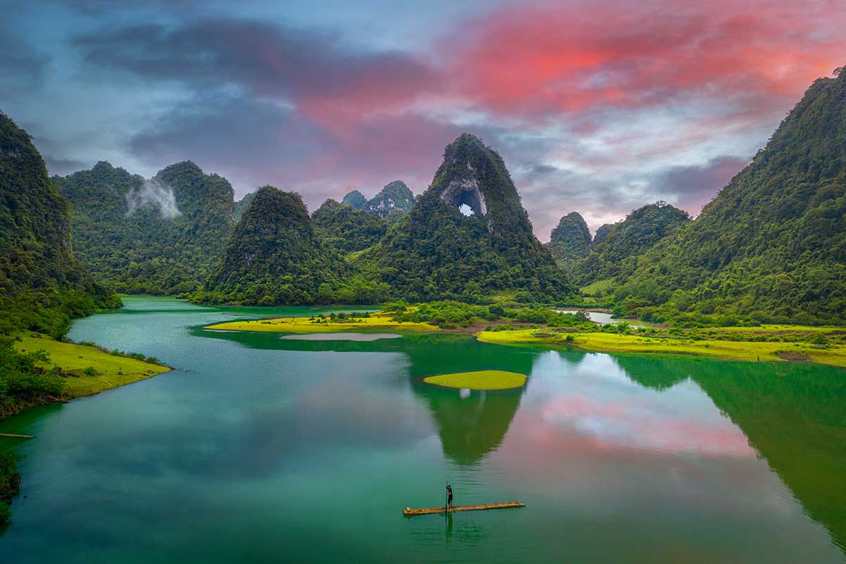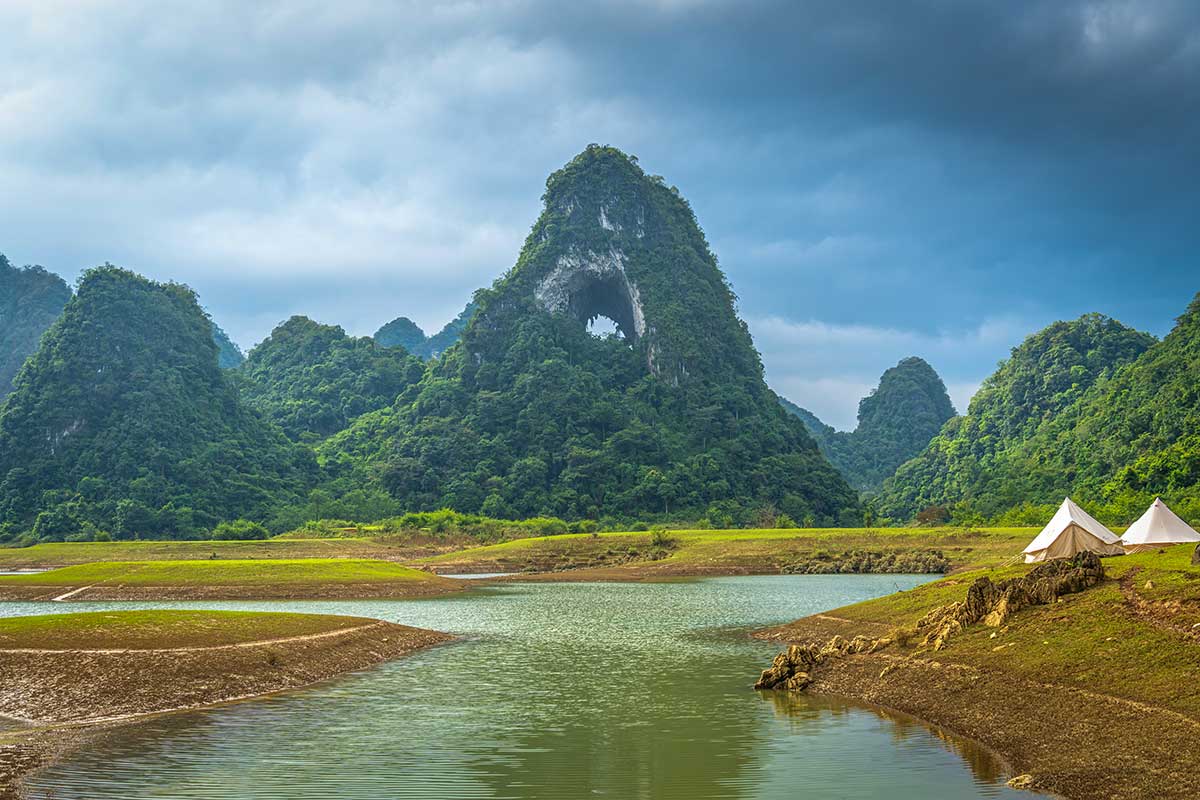 Nui Thung Mountain, ook bekend als Angel Eye Mountain of God’s Eye Mountain, ligt in de rustige Tuyet Tinh Coc-vallei, op ongeveer 30 kilometer van Cao Bang en zo’n 70 kilometer van de bekende Ban Gioc Waterfall. Vanuit Hanoi is het ongeveer 280 kilometer rijden naar Cao Bang. Afhankelijk van verkeer en route ben je hier meestal 6 tot 8 uur onderweg.