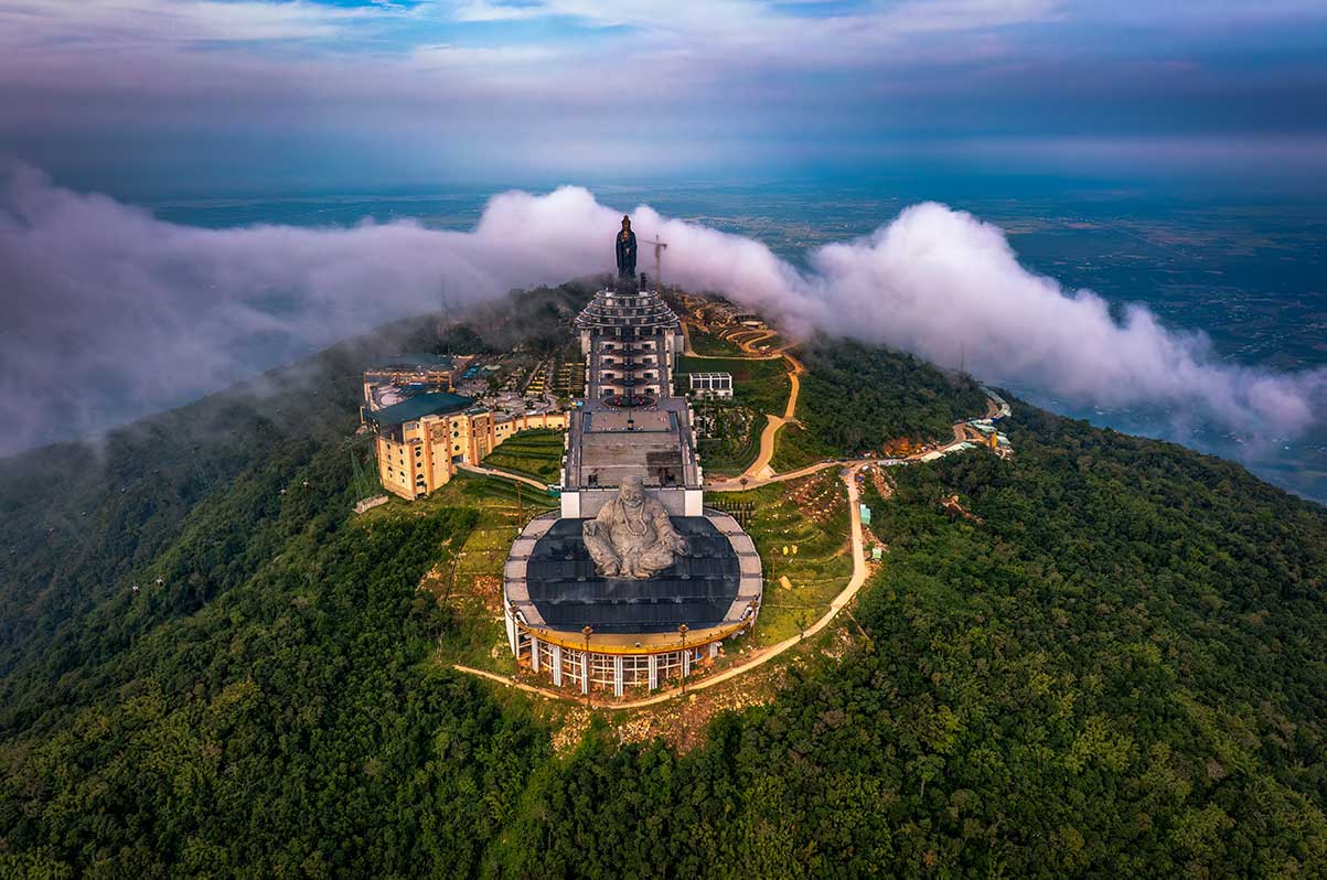 Op de top staat een enorme Tay Bo Da Son Bodhisattva, een van de hoogste boeddhistische beelden in Azië en duidelijk zichtbaar van veraf.