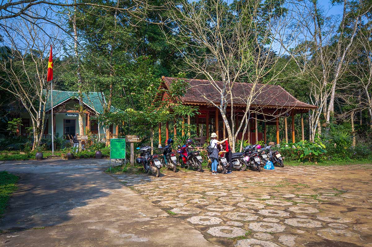Bij aankomst meld je je aan bij de ingang en krijg je een Engelstalige kaart van het hele gebied. De entree bedraagt 40.000 VND, inclusief de kaart. Kom je met de motorbike, dan betaal je daarnaast 5.000 VND parkeerkosten.