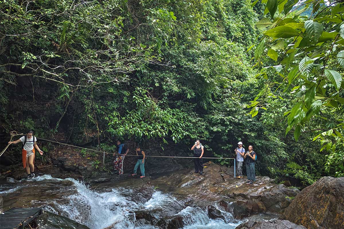Deze korte route brengt je rechtstreeks naar de Thac Gio-waterval. Afhankelijk van je tempo doe je er ongeveer 25 tot 40 minuten over. Het pad is relatief eenvoudig en geschikt als je weinig tijd hebt of vooral even de jungle in wilt zonder een lange wandeling te maken.