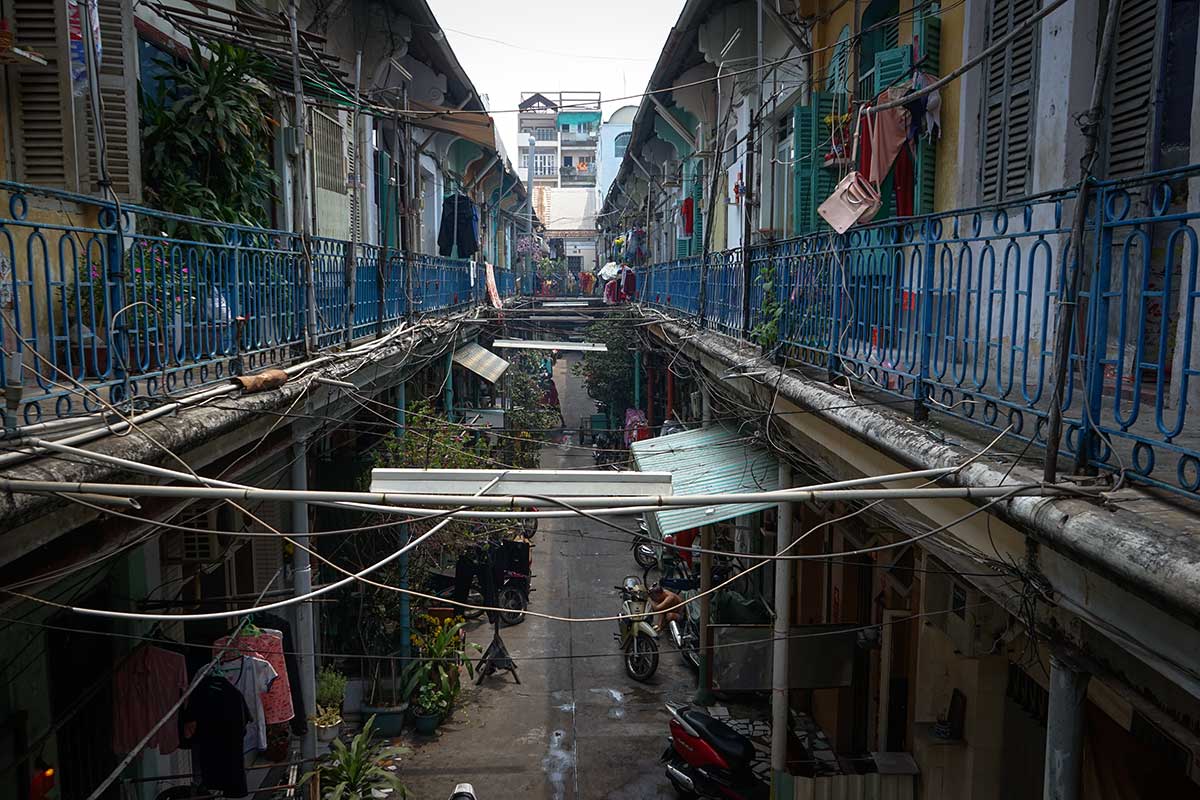 Hao Si Phuong is een smalle steeg waar al generaties lang vooral Chinees-Vietnamese families wonen. De felgekleurde huizen zijn ooit gebouwd als appartementen met meerdere verdiepingen.