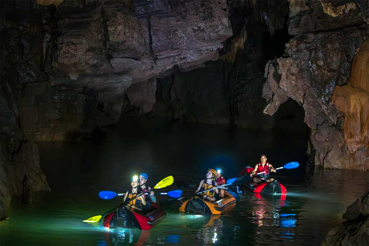 Voor reizigers die Phong Nha Cave op een actievere manier willen ervaren, is kajakken een alternatief voor de standaard boottocht. Via de zogeheten Phong Nha Cave Expedition kun je een kajaktocht van ongeveer 4,5 kilometer maken over de ondergrondse rivier. Daarmee ga je dieper de grot in dan bij het reguliere bezoek.