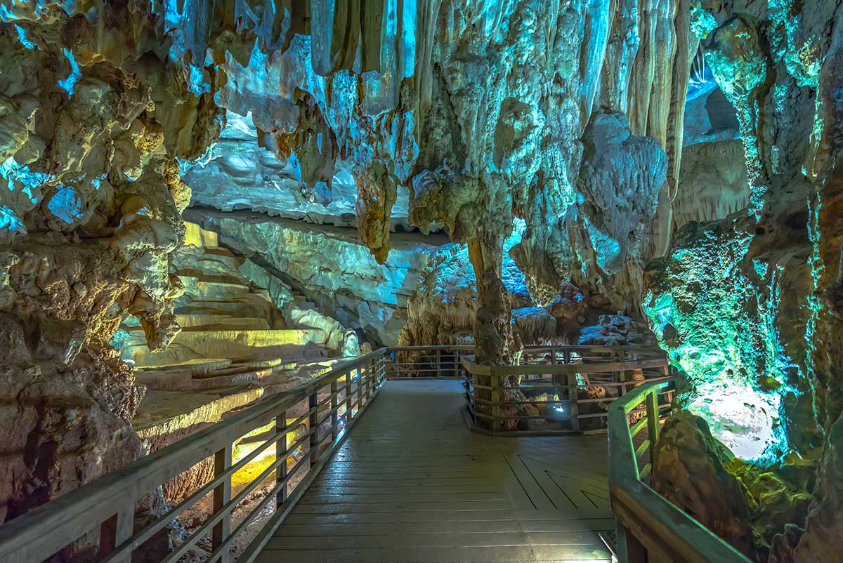 Hoewel een groot deel van het bezoek per boot verloopt, loop je ook een stuk in de grot. De paden zijn goed aangelegd en niet moeilijk, maar met comfortabele schoenen loop je prettiger en stabieler.