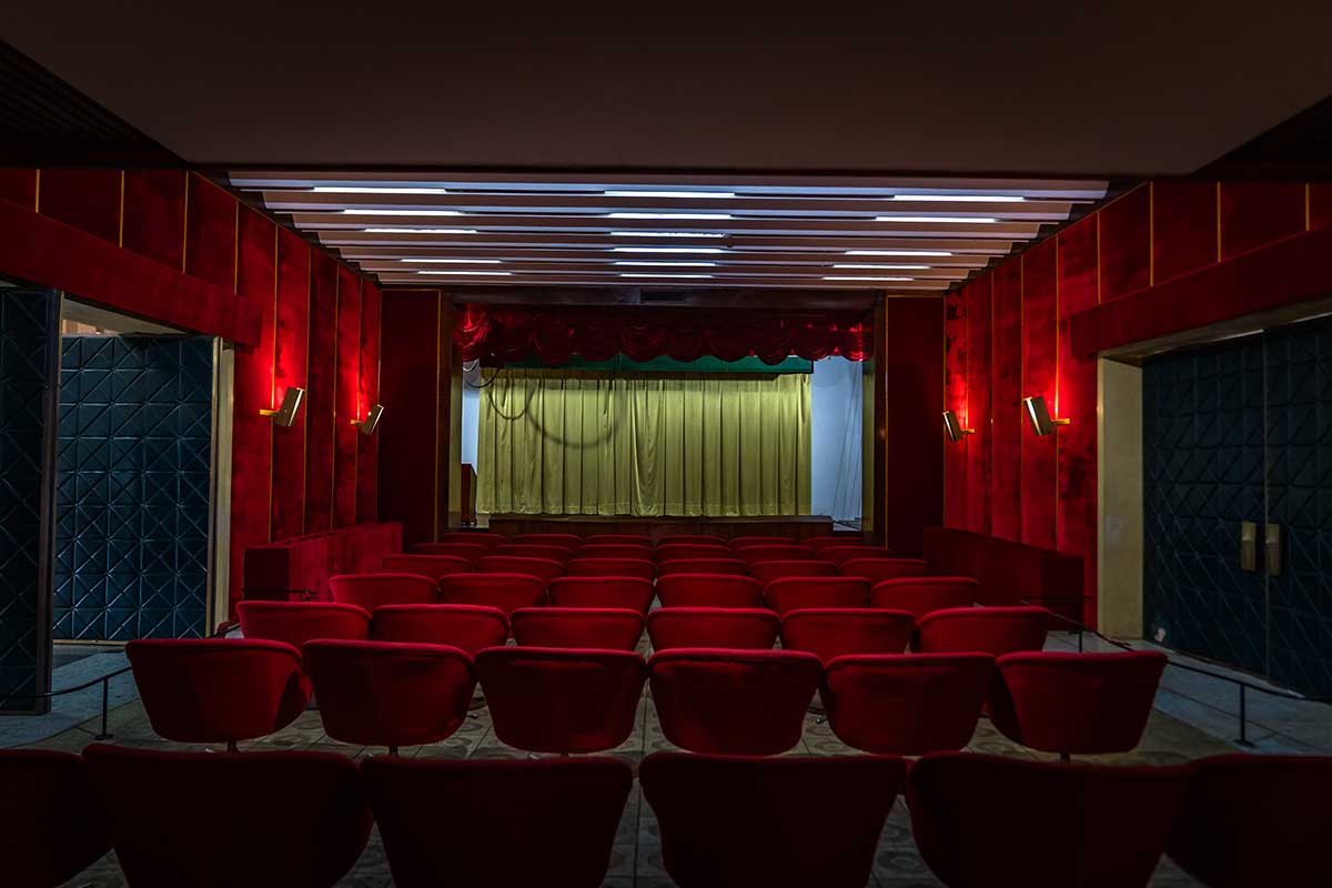 Bioscoopzaal in het Reunification Palace, waar de president en gasten films konden bekijken
