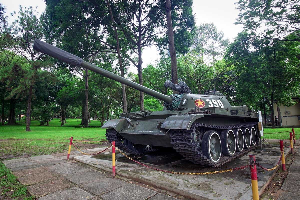 Leuk om te weten: de tank die op 30 april 1975 door de poort van het Reunification Palace reed, wordt tegenwoordig tentoongesteld in het Vietnam Military History Museum in Hanoi. In Ho Chi Minh City zie je bij het paleis zelf wel een tank, maar het originele voertuig staat dus in de hoofdstad.