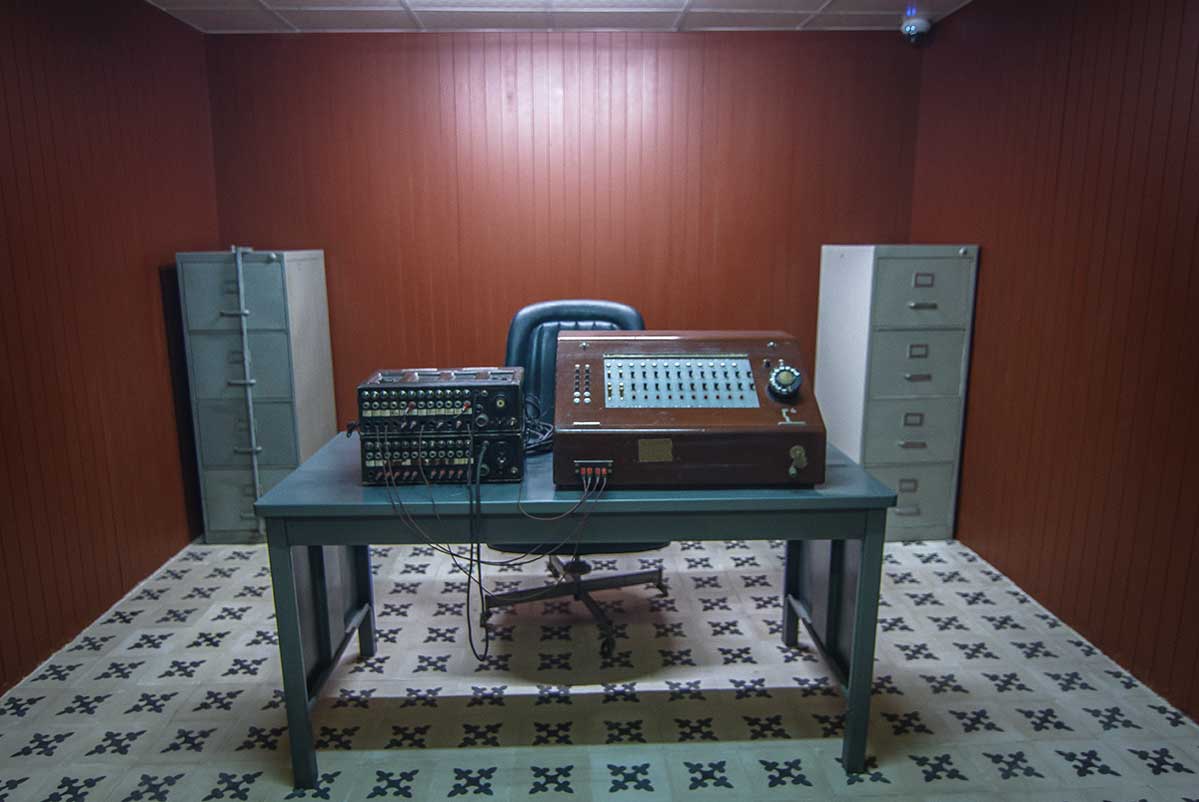 In de kelder bevindt zich het communicatiecentrum, van waaruit contact werd onderhouden met andere landen.