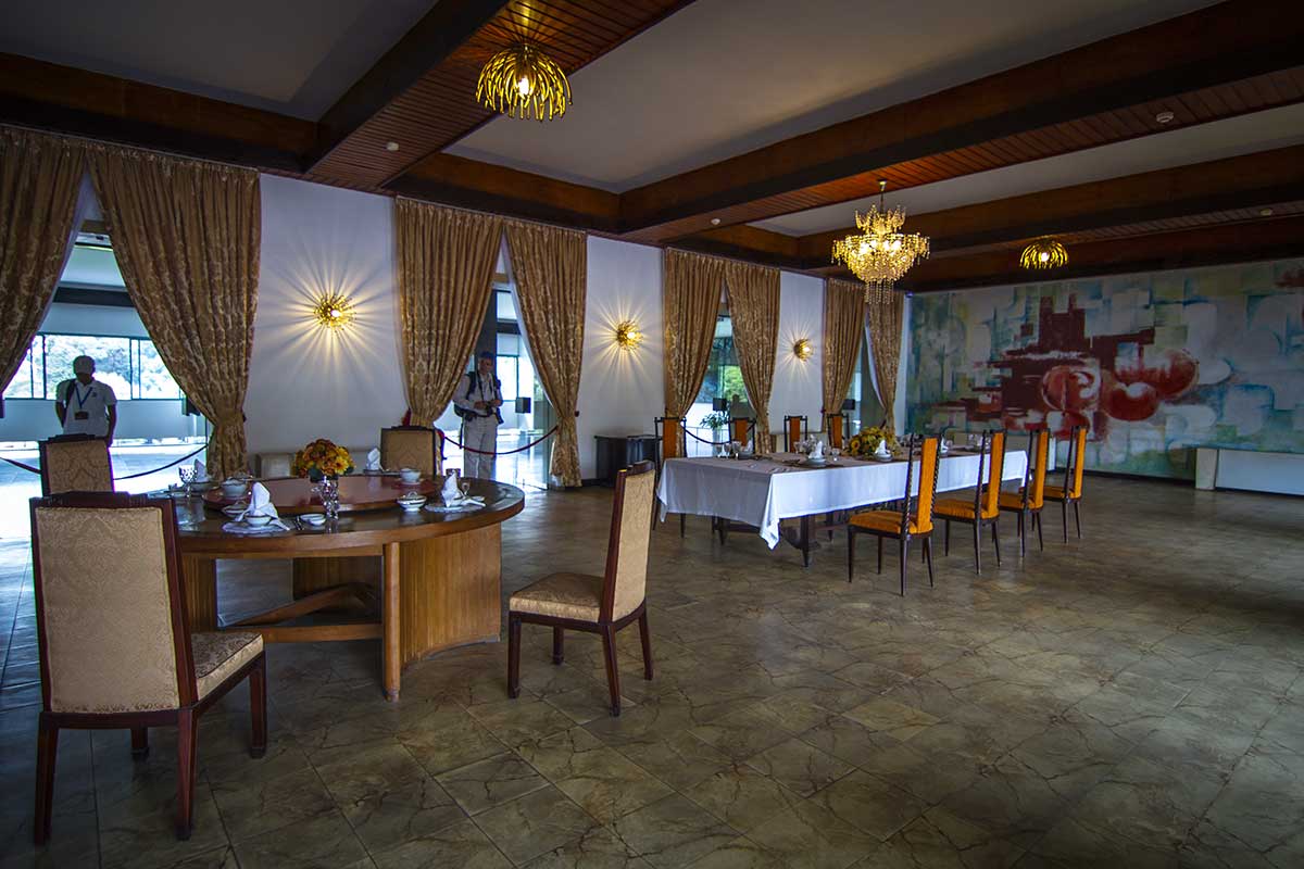 Eetzaal in het Reunification Palace in Ho Chi Minh City, gebruikt voor officiële diners en ontvangsten