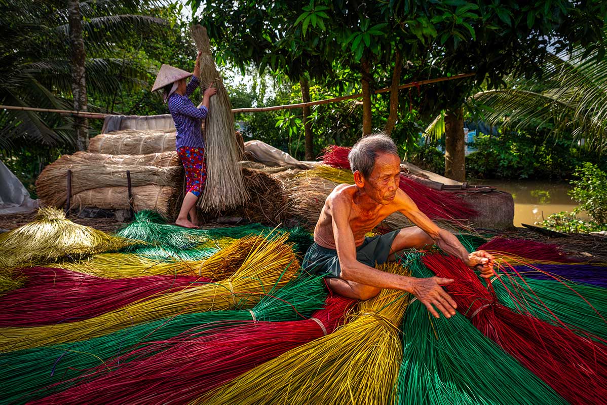 Je ziet hier het hele proces, van ruwe bies tot afgewerkte mat. Het is geen grote attractie, maar goed te combineren met Lai Vung omdat ze aan dezelfde route liggen.
