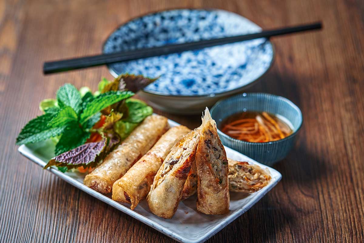 Verse springrolls met rijstvellen, kruiden, noedels en meestal garnalen of varkensvlees. Licht, fris en niet vet.