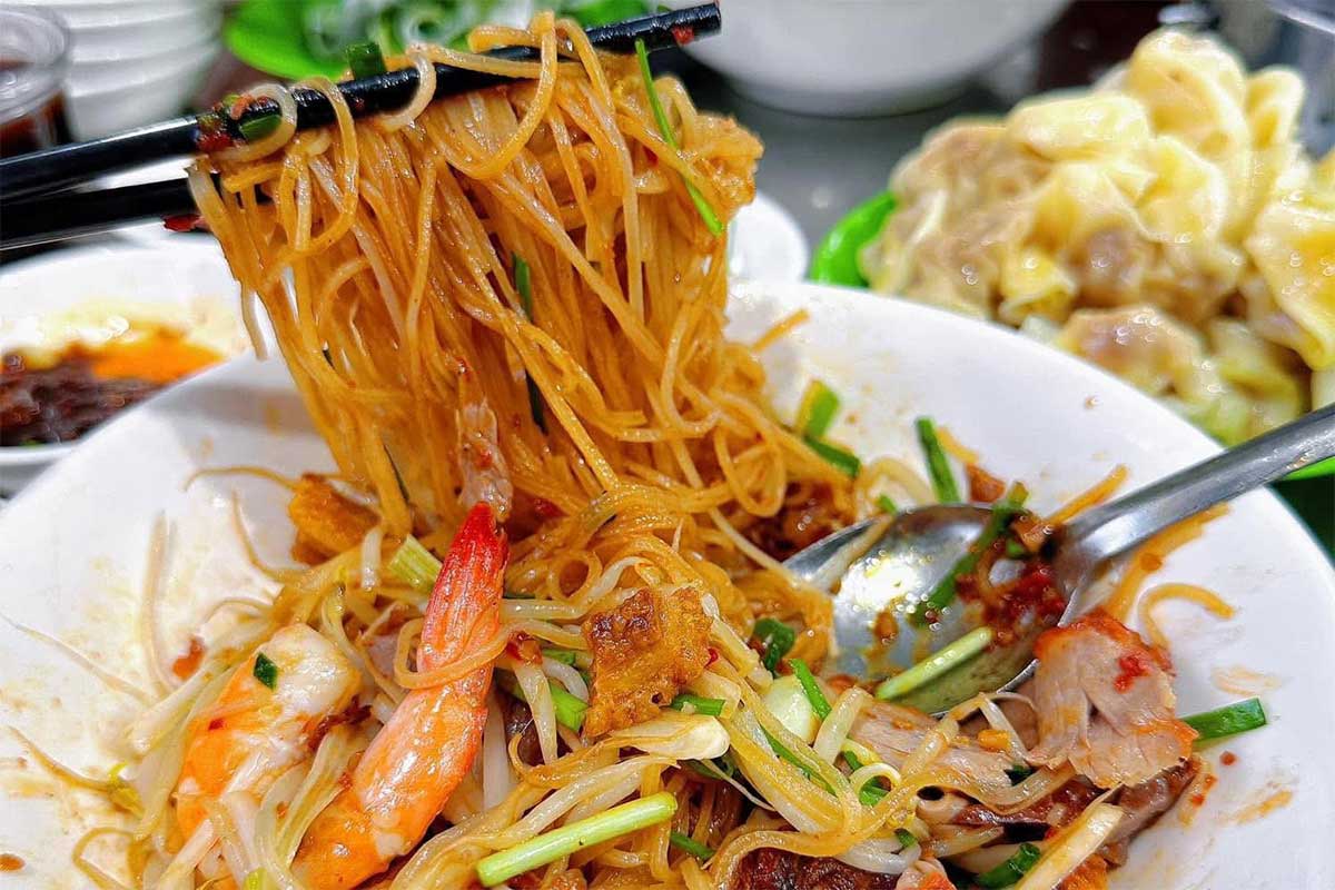 Noedelsoep of droge noedels met vlees en kruiden, vooral populair in Zuid-Vietnam. Minder bekend dan phở, maar breed verkrijgbaar.